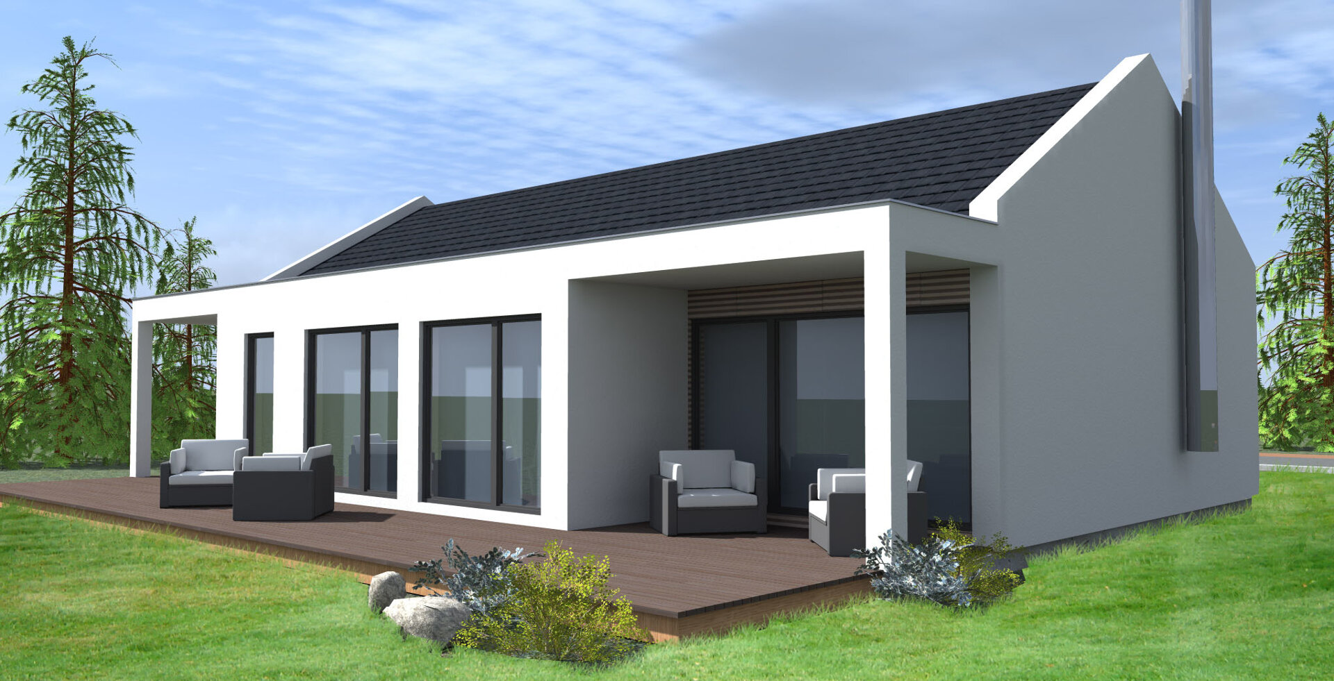 Nezapomínáme ani na estetickou stránku dřevostavby, kdy nám záleží na tom, abyste byli na svůj dům neustále pyšní. Proto spolupracujeme se špičkovým architektem, který převede váš sen o designové dřevostavbě na papír. Samozřejmě si ale můžete vybrat z velké škály typových dřevostaveb, které nabízíme.